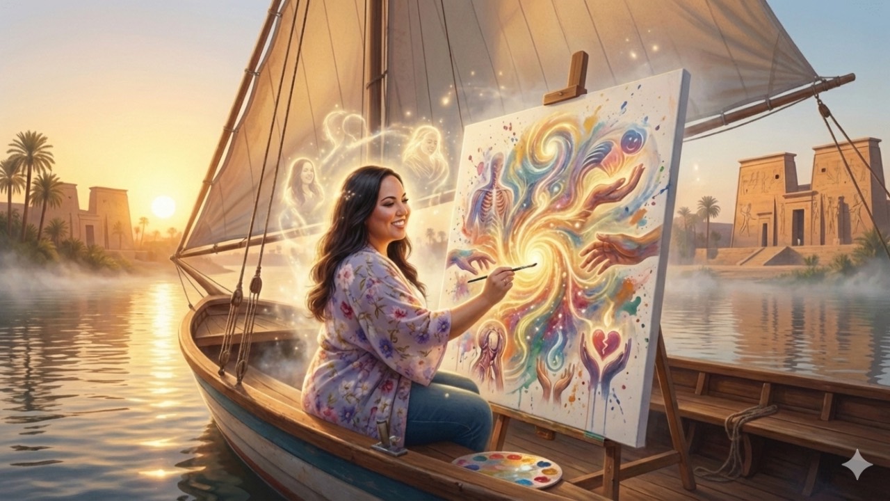 It was everything I hoped for — ancient temples covered in hieroglyphs, getting to go INSIDE the pyramid (yike 😅 I did NOT know what I signed up for!) and floating down the Nile painting Egyptian goddesses. Talk about a dream come true. ✨