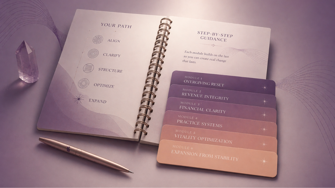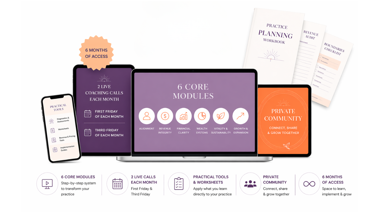 A step-by-step system to fix the structure of your practice so your time, energy, and income finally work together.